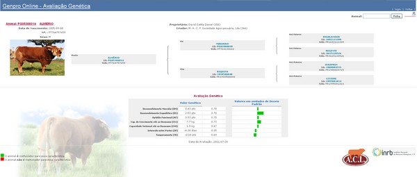 A avaliação genética dos animais Limousine, encontra-se disponível online, basta a colocação, na janela de busca, do nome do animal ou de dados que o identifiquem como o número SIA, total ou parcial, ou o número de LG, na sua totalidade, incluindo as letras.